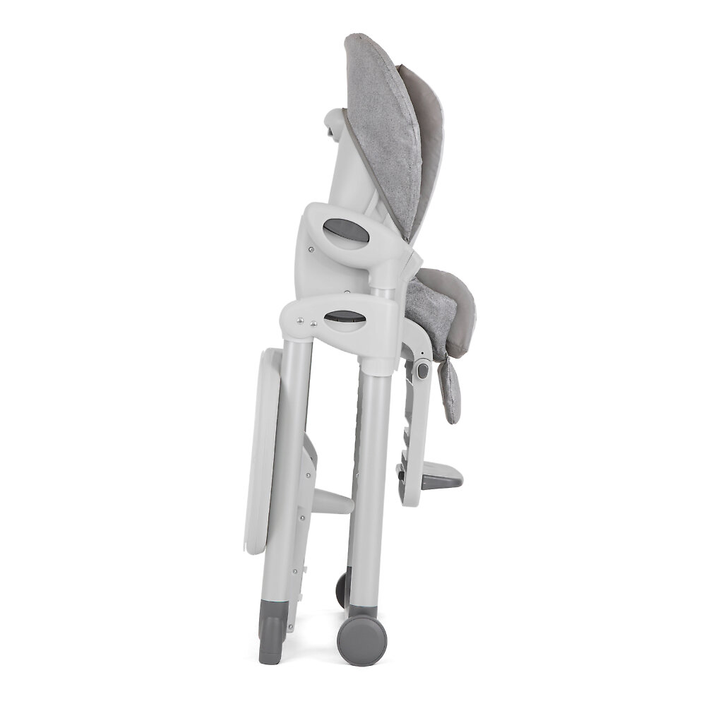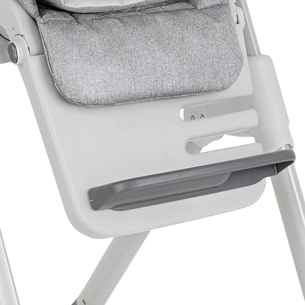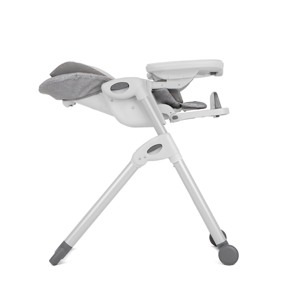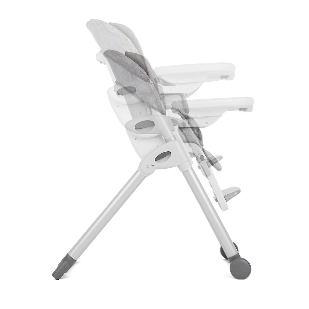 Joie Mimzy ReclineСтульчик очень устойчивый благодаря широким ножкам и оптимальной длине. Высота сиденья регулируется в 7 положениях. Подножка с регилуруемой подставкой поддерживает ножки ребенка. Конструкция просто складывается, в сложенном виде занимает мало места, устойчива без дополнительной опоры. Стульчик можно перемещать по дому благодаря колесикам на передних ножках.
