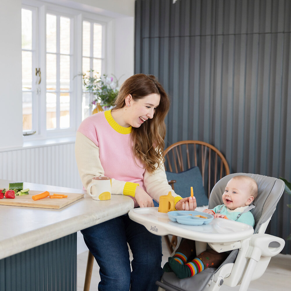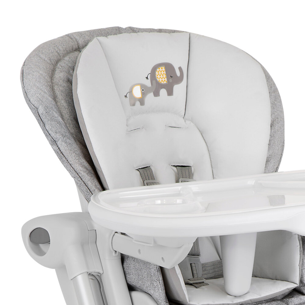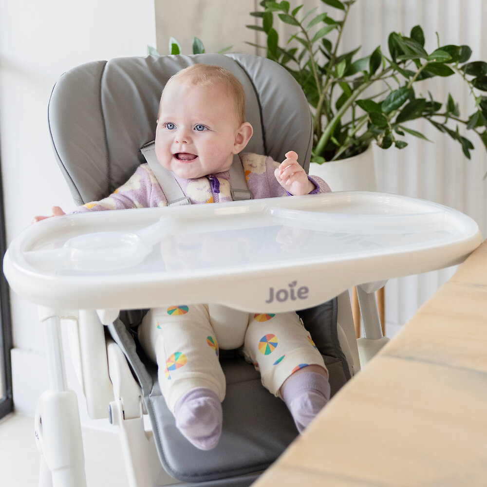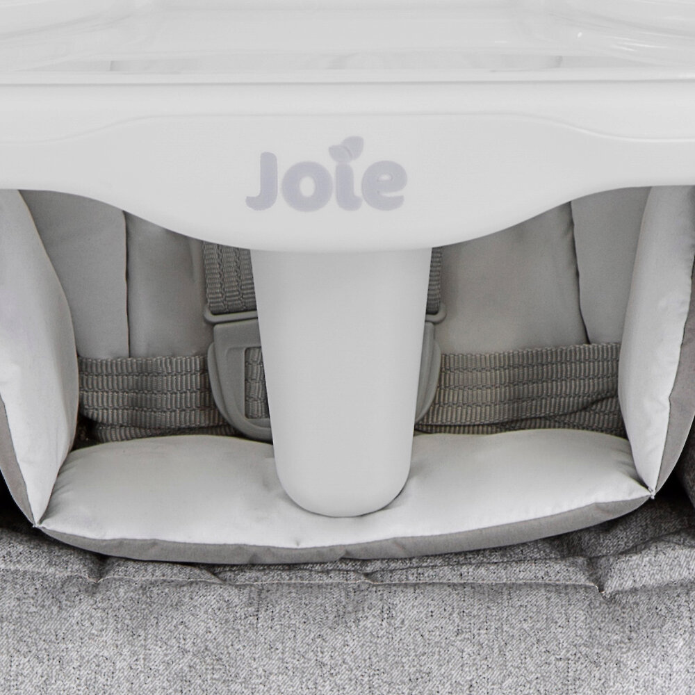 Joie Mimzy ReclineУютное местечко не сковывает движений малыша. Оно изготовлено из приятных на ощупь материалов, легко поддающихся очистке от пищевых и прочих загрязнений. Животик ребенка не заболит после приема пищи из-за неудобной посадки, ведь спинка регулируется в 5 положениях. После сытного обеда кроха может сладко вздремнуть, пока остальные члены семьи беседуют и пьют чай.