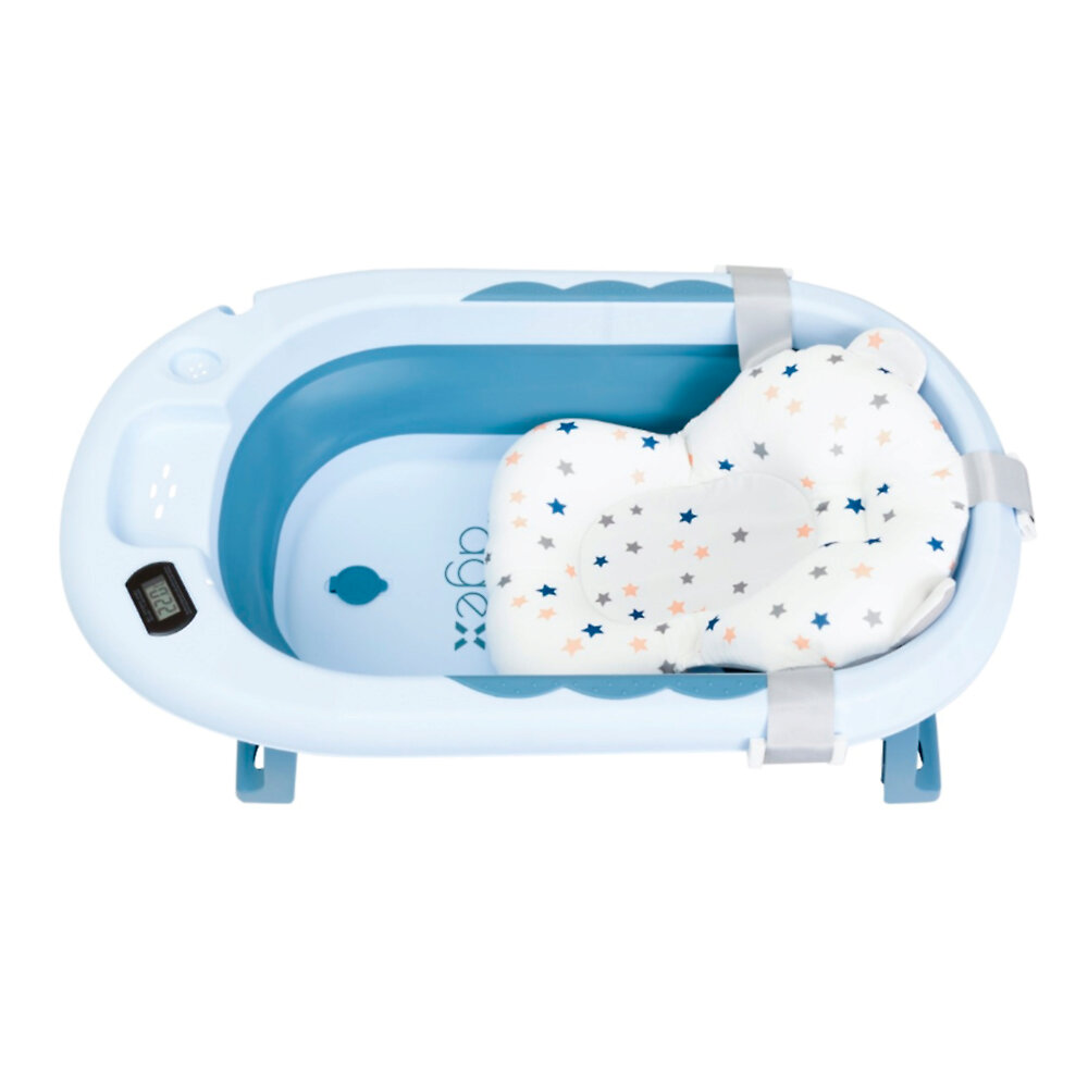 Для слива воды предусмотрена герметичная плотная пробка, исключающая протекания во время купания. При этом ванночка имеет складную конструкцию – после использования её легко сложить, чтобы компактно хранить, не занимая лишнего места в ванной комнате. Можно повесить ванночку на крючок, для этого предусмотрена специальная петля. Идущий в комплекте матрасик надежно крепится к бортикам ванночки Agex Aqua и используется в первые месяцы жизни малыша.