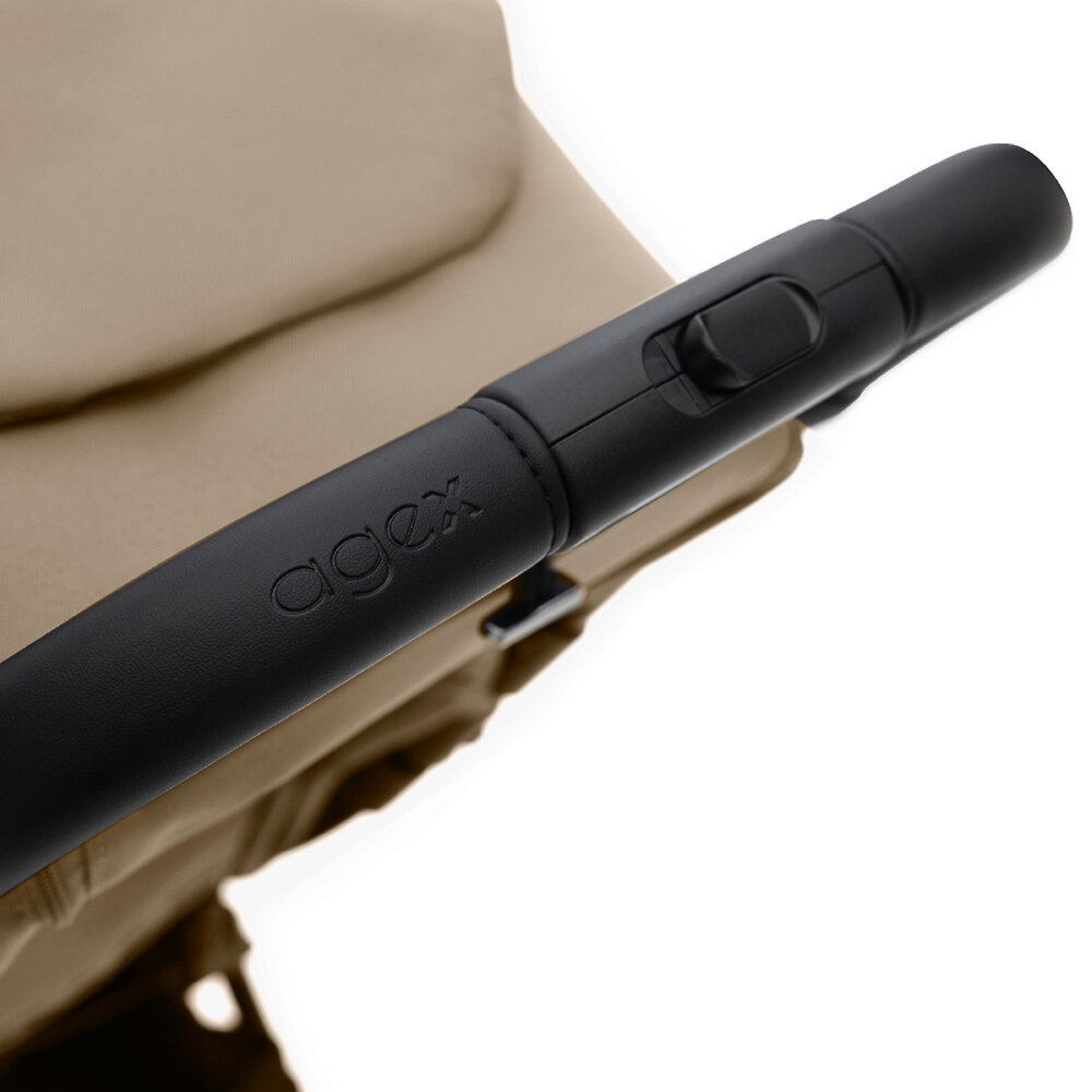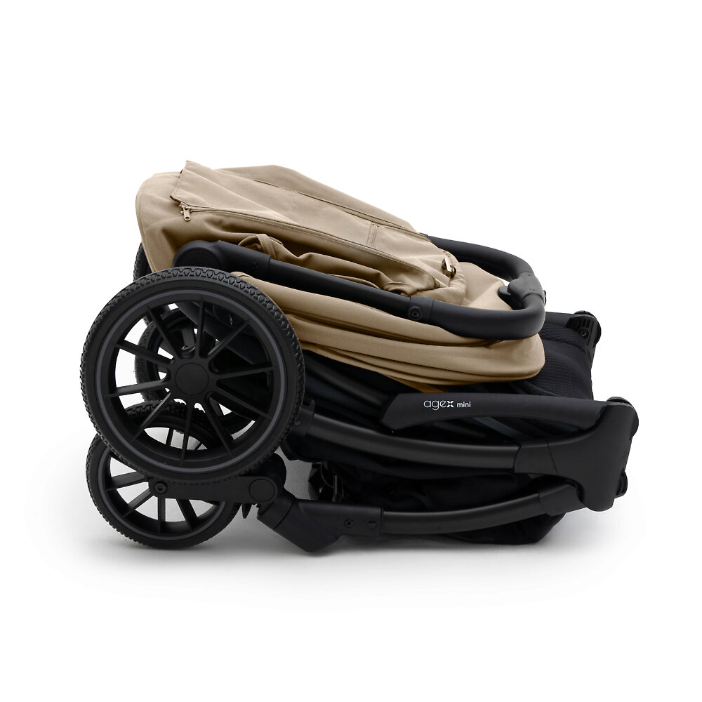 Компактная коляска Agex Mini All RoadШасси прогулочной коляски разработано с учётом потребностей современных родителей, которые ценят мобильность и компактность каждой поездке. Автоматическая система складывания по типу «книжка» позволяет одним движением руки сложить до компактных размеров, и коляска уверенно стоит в вертикальном положении, не пачкая текстиль. Это идеальное решение для хранения в малогабаритных квартирах, багажнике автомобиля или поездок в общественном транспорте. Встроенная ручка позволяет легко переносить её одной рукой. Плавное движение от городского асфальта до брусчатки и грунтовых дорог достигается благодаря большим полиуретановым колёсам и системе амортизации на каждом из колёс. Передние колёса Agex Mini All Road поворотные на 360 градусов с возможностью фиксации прямо, что особенно полезно на сложных участках, таких как рыхлый песок или снег.