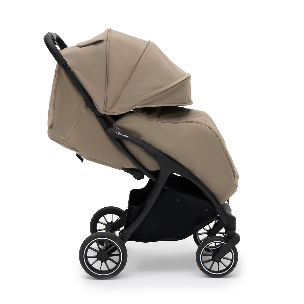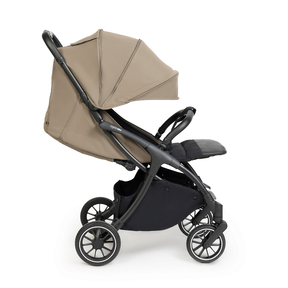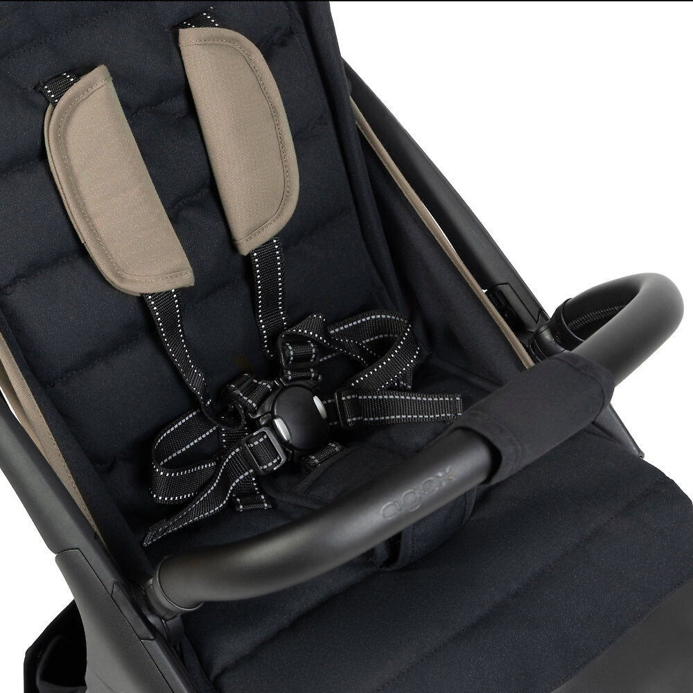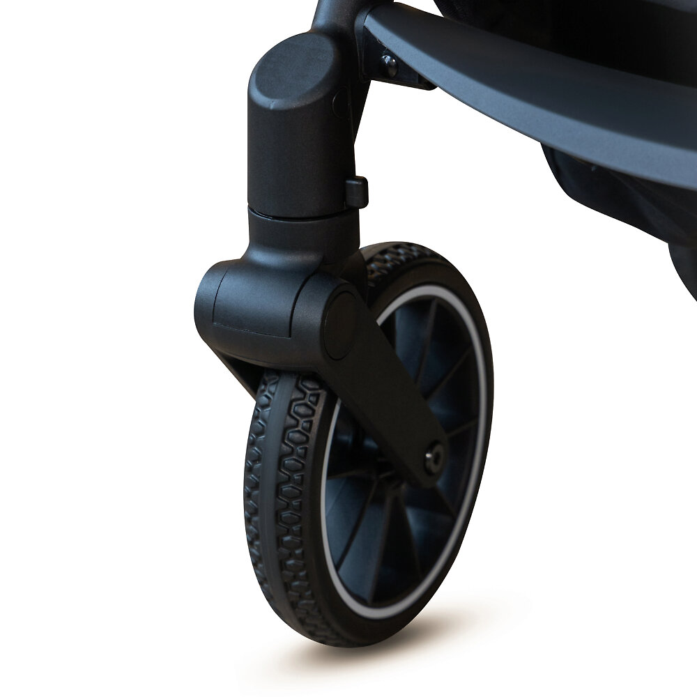Крупные полиуретановые колеса Agex Mini LX с глубоким протектором имеют приятное сцепление с дорогой. Они не боятся проколов и не нуждаются в подкачке. Коляска очень маневренная и юркая, при этом едет тихо и плавно. Система амортизации, интегрированная в шасси коляски, отлично работает на сложных участках пути. Вместительная корзина имеет отличный доступ спереди и сзади. Вы можете легко доставать все нужные вам вещи, даже когда ребенок спит. Тормоз находится по центру задней перекладины, надежно и быстро фиксирует колеса и не пачкает обувь.