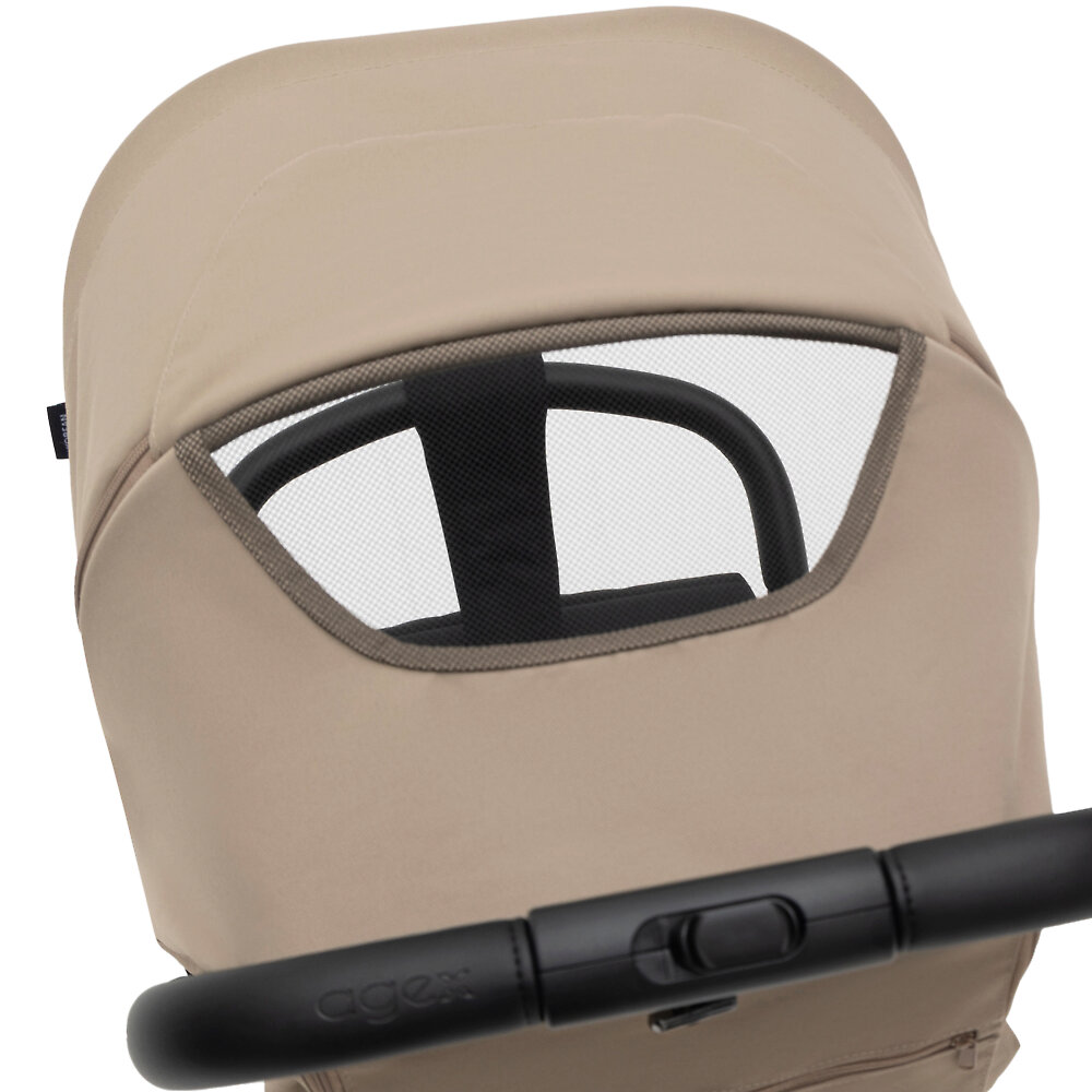 Большой капюшон Agex Mini LX отлично закрывает малыша от непогоды, ветра и снега. Дополнительная секция легко открывается на молнии. Она увеличивает капор и он закрывает кроху до самого бампера. Сверху расположено смотровое окошко, через которое родители могут наблюдать за сном своего крохи. На задней части капюшона расположен карман для мелочей, куда можно положить телефон, ключи или кошелек. А в жаркую погоду удобно использовать большую секцию для вентиляции. Откройте две молнии по бокам и откиньте шторку. Теперь во время сна малыш будет дышать свежим воздухом, без угрозы перегрева в знойный летний день.
