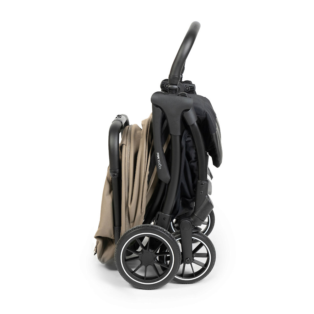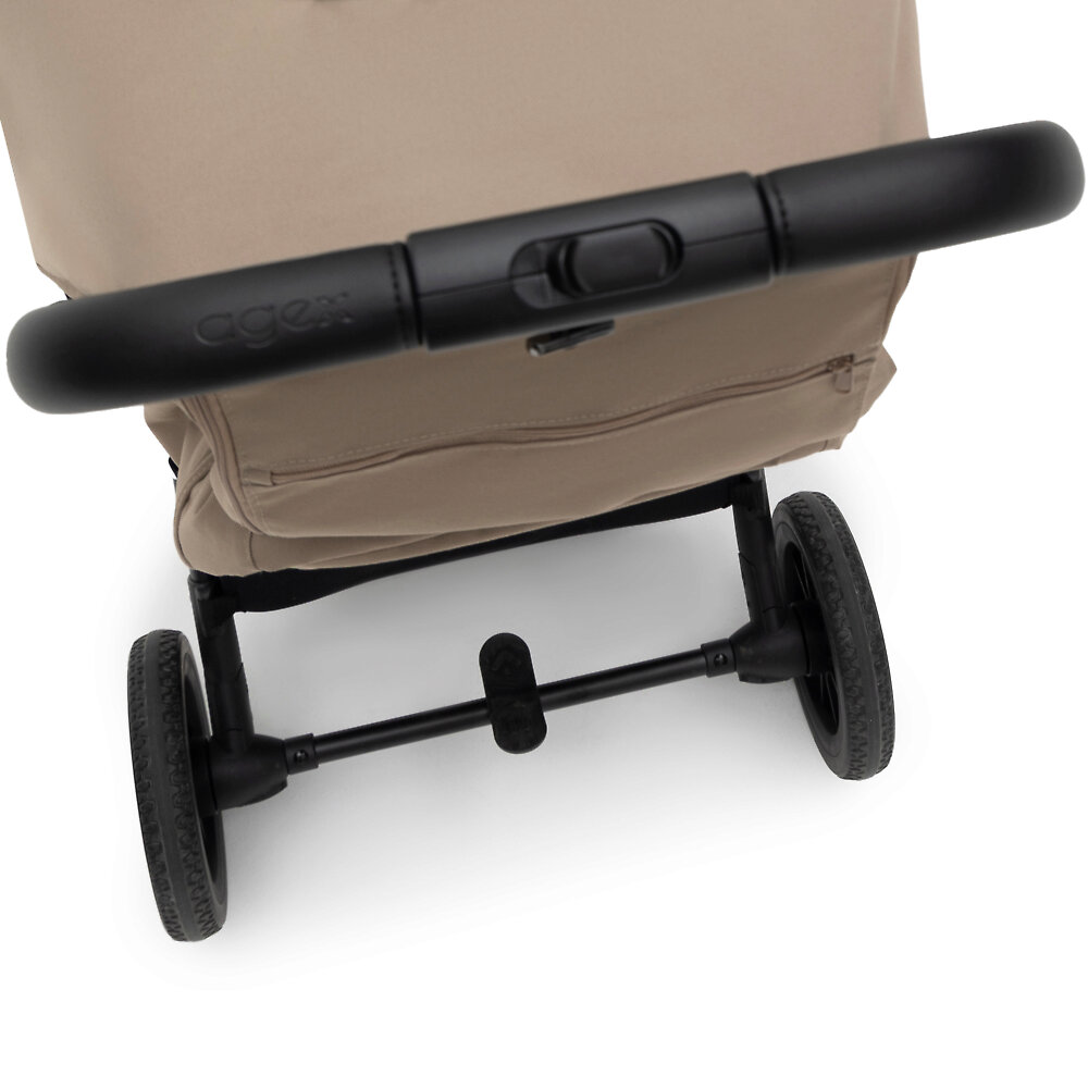 Ручка коляски не регулируется по высоте, но находится в оптимальном положении, рассчитана на родителей любого роста. В центре ручки – система сложения коляски. Просто активируйте её и отпустите ручку. Коляска Agex Mini LX автоматически сложится в компактную сумочку у ваших ног. В сложенном виде она занимает минимум места, а во многих авиакомпаниях проходит в ручную кладь самолета.