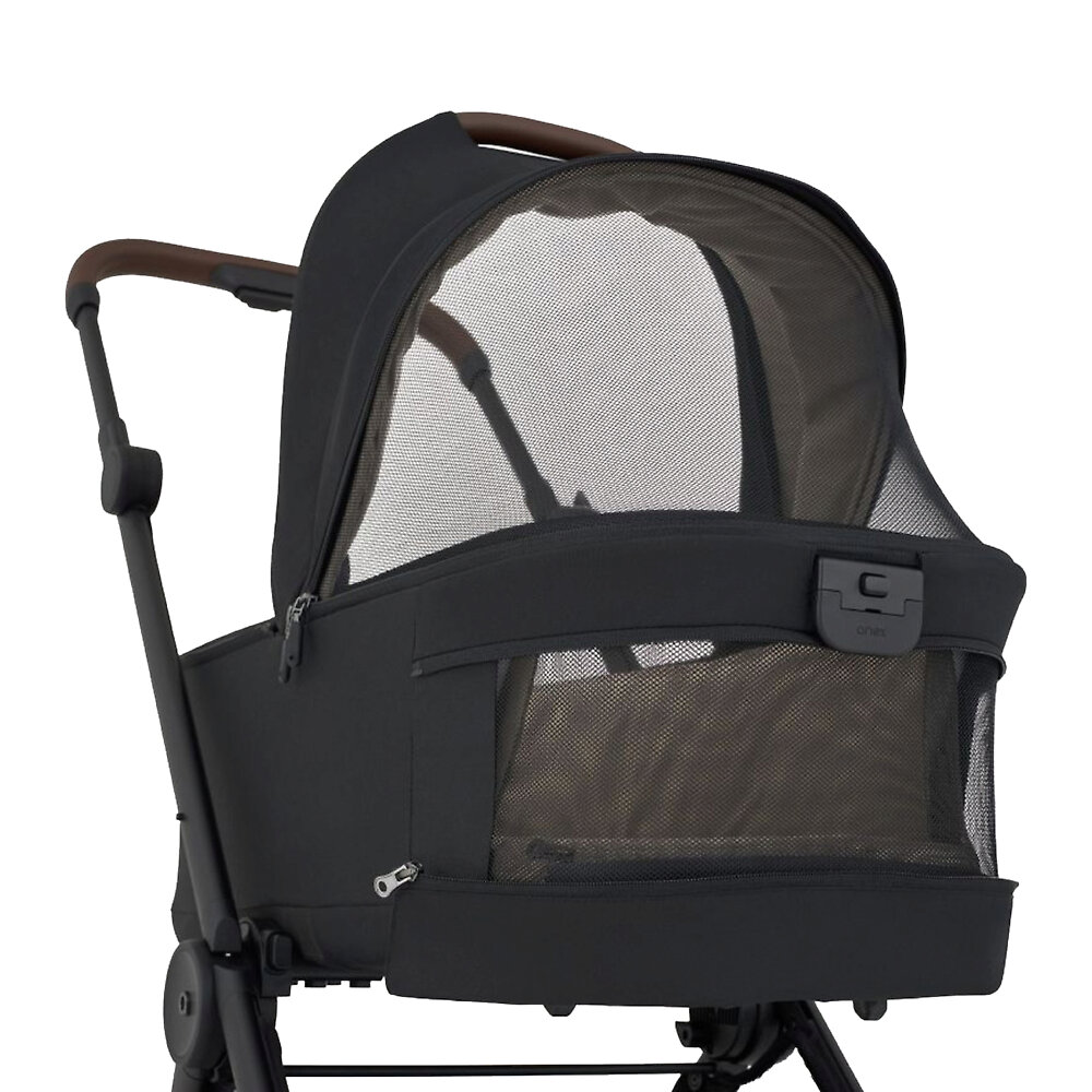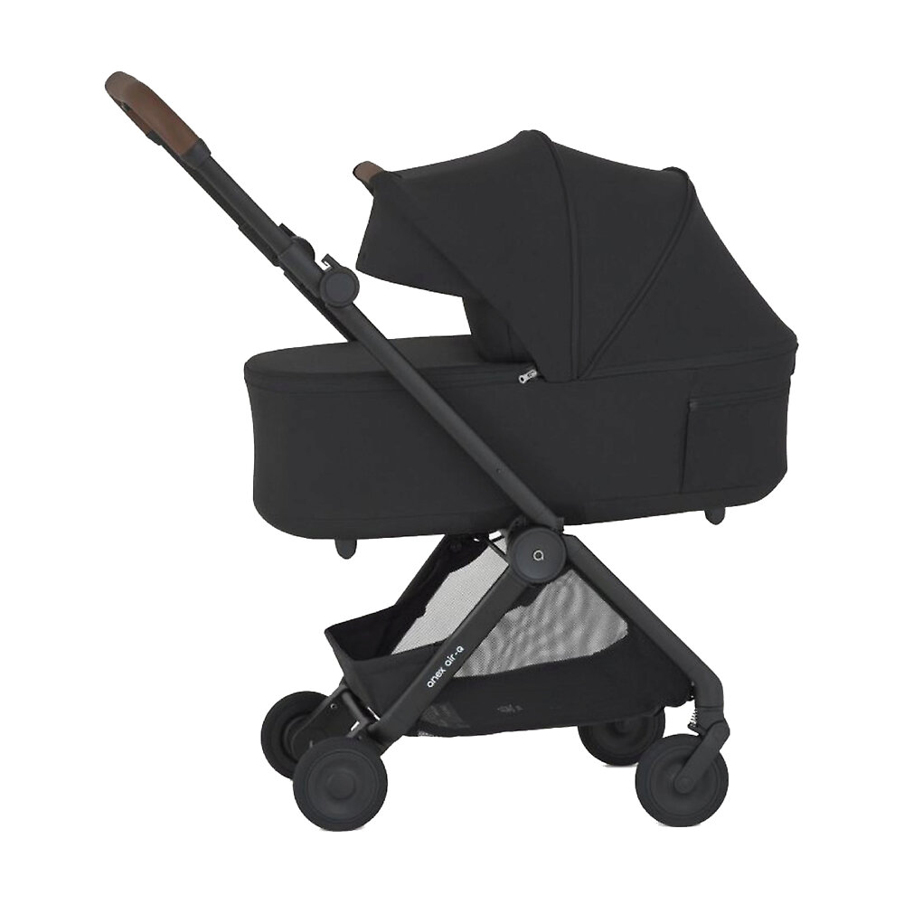 Люлька для коляски Anex Air-QЛюлька легко снимается с шасси и устанавливается обратно: достаточно нажать на кнопки с обеих сторон, чтобы отсоединить блок. Для переноски предусмотрена удобная ручка на капюшоне. А пластиковые ножки на дне позволяют ставить люльку на пол, не боясь испачкать текстиль. Люлька легко складывается вместе с шасси в компактный блок, который соответствует рекомендуемым IATA размерам ручной клади. Это позволяет брать коляску с собой в самолёт, поезд или автомобиль без лишних хлопот.