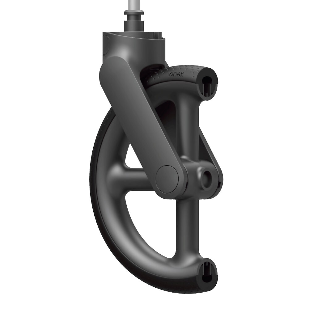 Колёса Anex Modu выполнены из современного PU-материала. Они обеспечивают коляске невероятно плавный и тихий ход. Конструкция дополнена амортизаторами на передних колёсах и в стойках рамы – это повышает устойчивость и дарит мягкость движения даже на неровных поверхностях. Специальная система антивоблинга предотвращает вибрацию колёс во время движения, обеспечивая плавность хода на любом дорожном покрытии. При движении по песку или снегу передние поворотные колеса можно зафиксировать в положении прямо. Так ходовые качества коляски Anex Modu станут лучше и она сможет смело ехать даже по бездорожью.