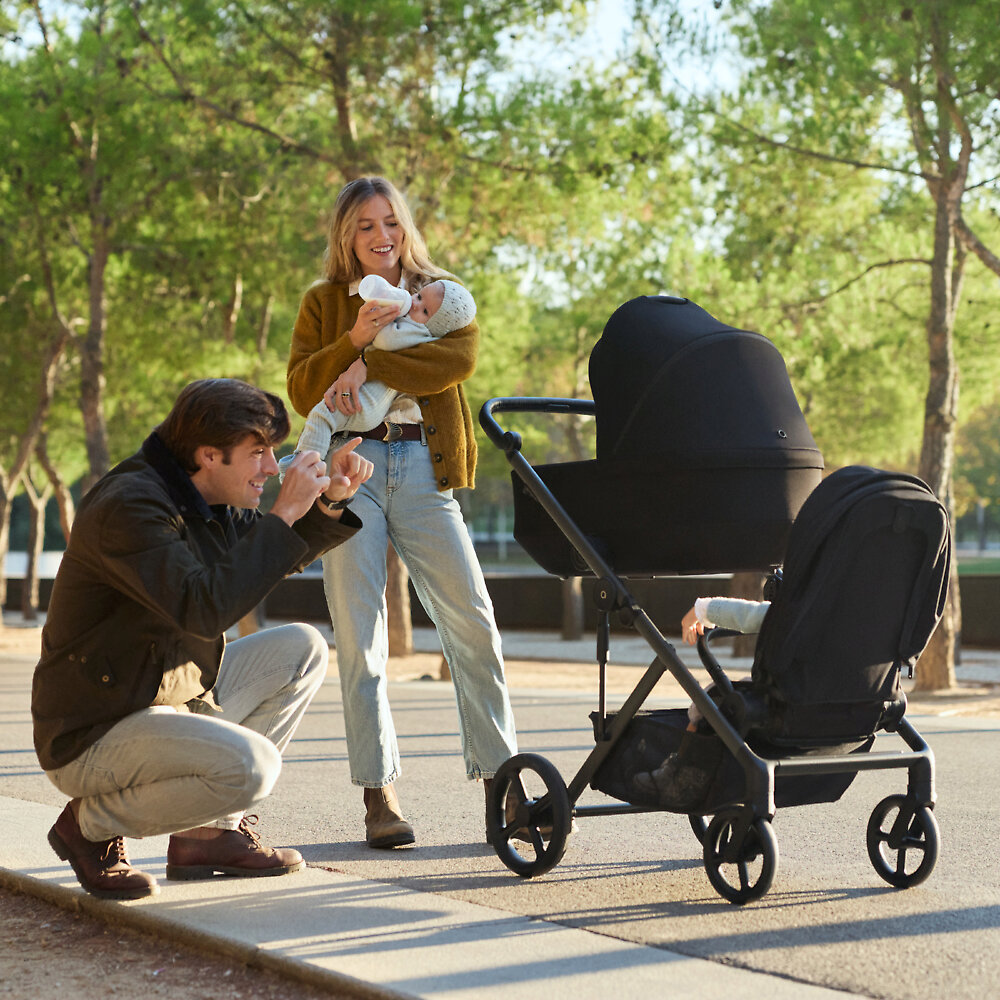 В комплектации 2в1 эта коляска отлично подходит как для одного ребенка, так и для погодок. Пока младший спит в уютной люльке, старший может отдыхать в прогулочном блоке. И всё это на одном шасси!