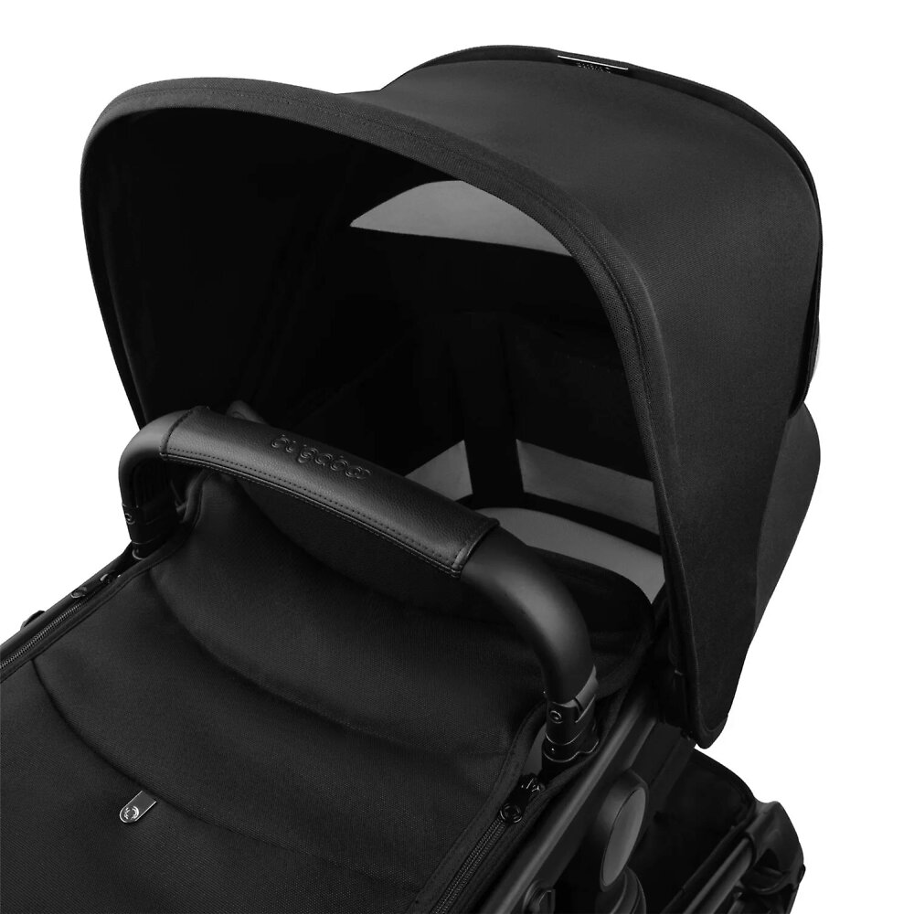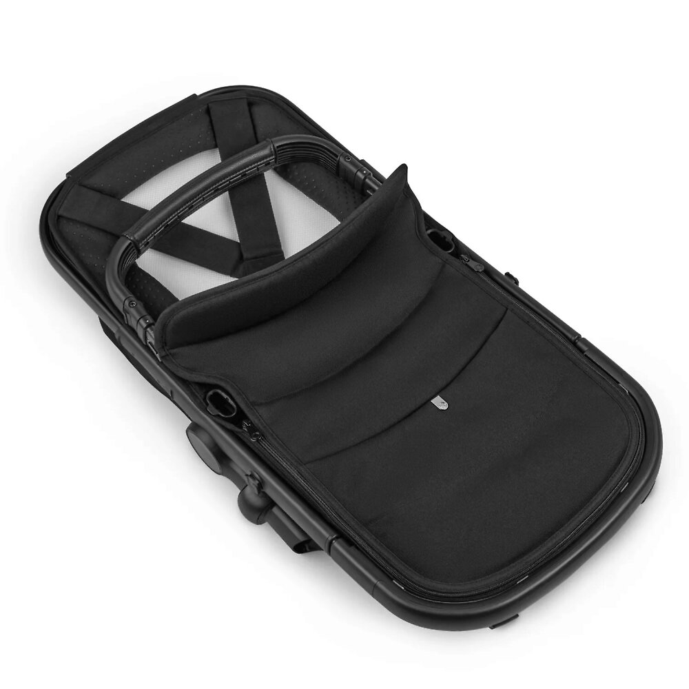 Внутренние размеры люльки впечатляют. Здесь просторно даже в объемном зимнем конверте. Спальный блок в коляске Bugaboo Fox 5 Renew имеет ровное деревянное дно. Обновленный упругий матрасик PureBreeze™ поддерживает малыша, обеспечивая правильное положение головы, шеи и спинки крохи. Вся ткань снимается целиком для стирки. Нажмите поочередно кнопки по бокам и потяните за бампер, чтобы снять люльку с шасси. Колыбель можно переносить вместе с ребенком, оставив раму за дверью. На дне предусмотрены массивные ножки, поэтому смело ставьте люльку на пол. Шасси можно сложить вместе с установленным спальным блоком. Также люльку можно превратить в плоскую компактную конструкцию для хранения и транспортировки.