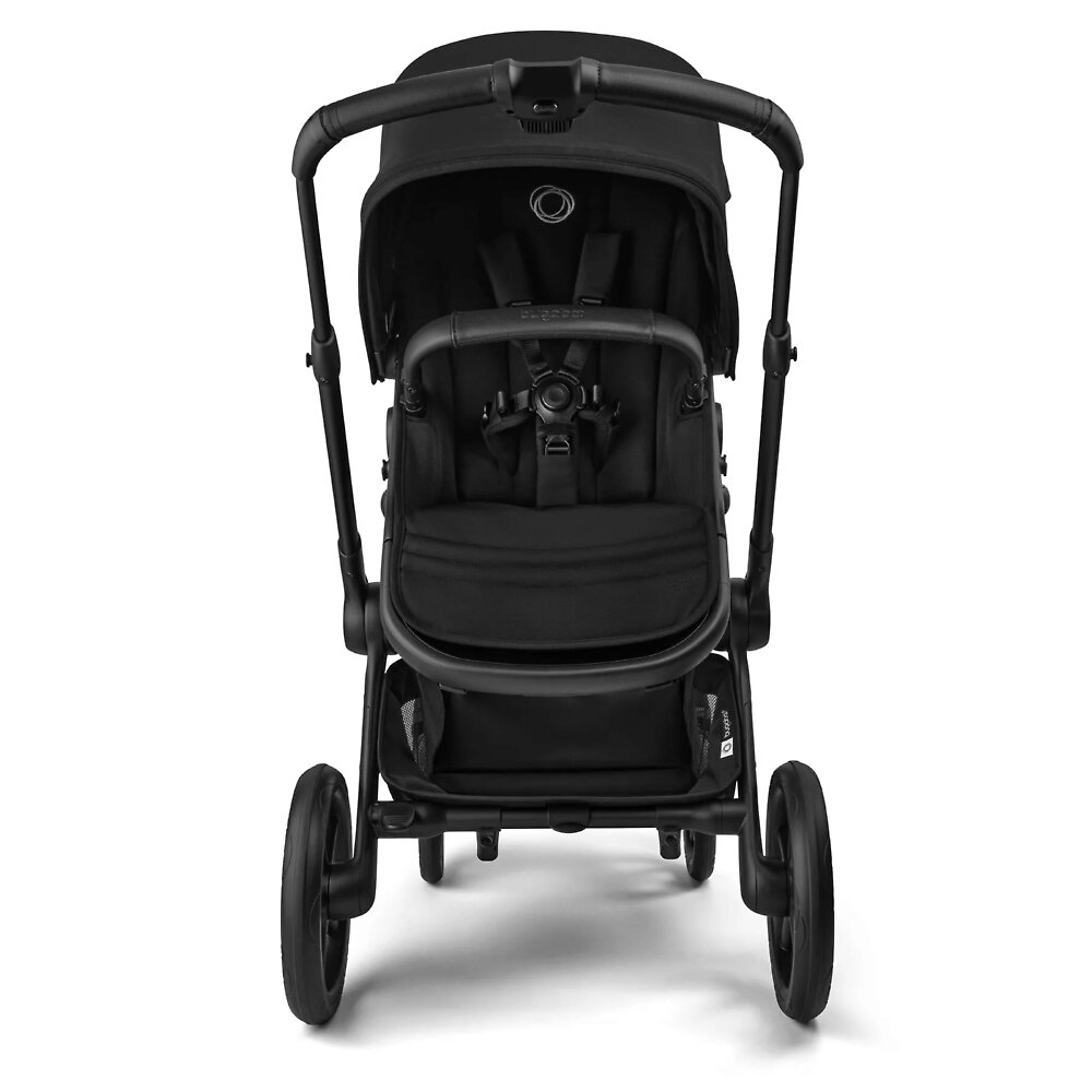 Для проезда по песку, глубокому снегу или подъема по ступенькам у Bugaboo есть фирменный режим двух колес. Сложите раму пополам и катите коляску за собой, словно тележку. Ножной тормоз блокирует движение коляски одним нажатием ноги и абсолютно безопасен для обуви. Ручка для управления коляской телескопически регулируется по высоте, исходя из роста родителей. По центру ручки – кнопка регулировки, в ней же заключена функция сложения коляски. Опустите ручку вниз и немного нажмите. Шасси поддастся и компактно сложится, как вместе с люлькой, так и с прогулочным блоком, установленным в любую сторону.