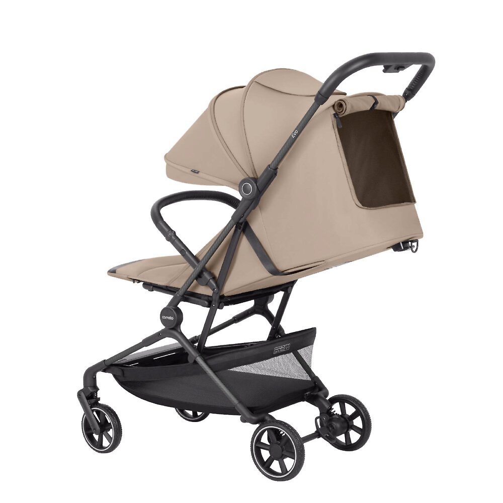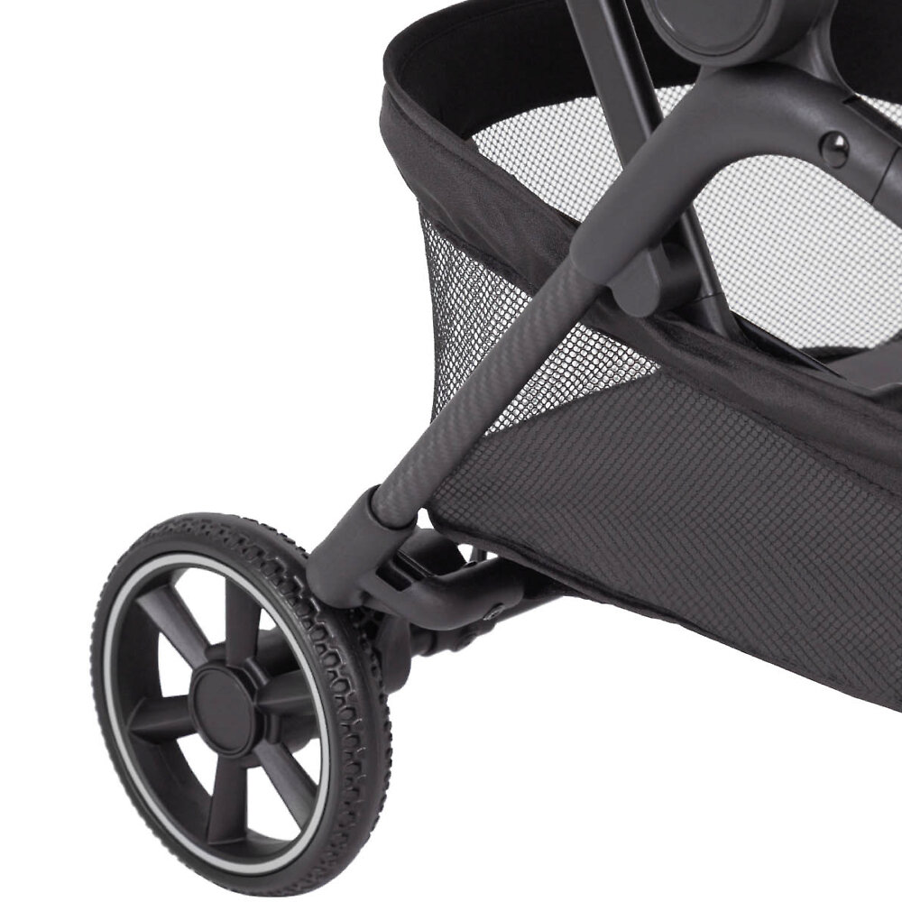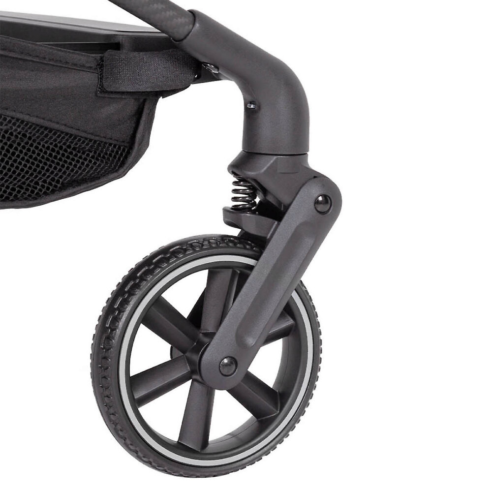 Прогулочная коляска Carrello EvoСверхлегкая, но прочная, карбоновая рама Carrello Evo имеет литую конструкцию, не люфтит и не скрипит. Непрокалываемые колёса готовы к сложным участкам пути, а мягкая пружинная амортизация делает ход коляски плавным даже при езде по брусчатке. В большой корзине с удобным доступом спереди, под подножкой, можно с легкостью разместить всё необходимое из вещей. Корзина расположена довольно высоко от земли, не провисает и не задевает бордюры при подъеме на них. Тормоз находится на перекладине между задних колес, он выполнен в виде двусторонней педали и не пачкает обувь родителей.