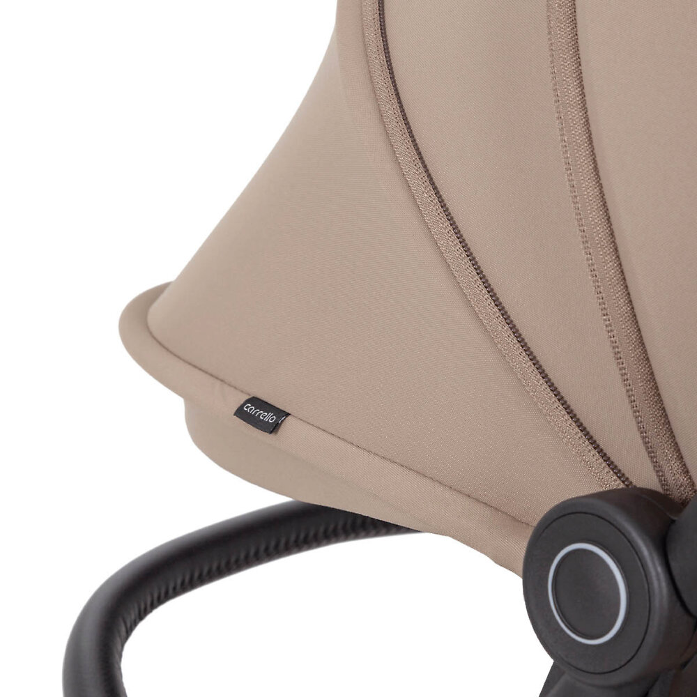 Прогулочная коляска Carrello EvoБольшой капюшон коляски Carrello Evo бесшумно расширяется, при помощи дополнительной секции на молнии вы раскроете его буквально до бампера. Сверху расположено смотровое окошко, через которое удобно наблюдать за сном крохи. На задней части капора находится кармашек для мелочей, а под ним большая секция для проветривания в жаркое время года.