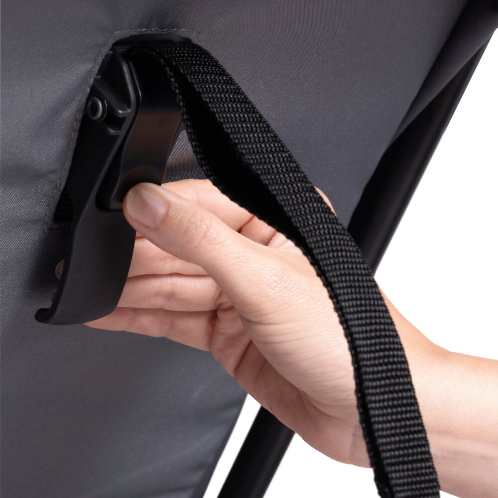 Ручка имеет эргономичную форму, которая обеспечивает удобный и надёжный хват. Она расположена на оптимальной высоте, позволяя родителям комфортно вести коляску, не наклоняясь и не прилагая лишних усилий. Материал ручки приятен на ощупь и не скользит, что гарантирует уверенное управление даже в дождливую погоду или в перчатках. Коляска одна из самых лёгких в своём классе и позволяет без труда переносить, поднимать по лестницам или брать с собой в общественный транспорт. Chicco Urbino оснащена системой быстрого складывания одной рукой. Механизм работает интуитивно: достаточно одного движения, чтобы сложить коляску в компактную «книжку». В сложенном виде шасси устойчиво стоит без дополнительной опоры, а бампер, входящий в комплект, служит удобной ручкой для переноски. Коляска в сложенном виде занимает минимум места.