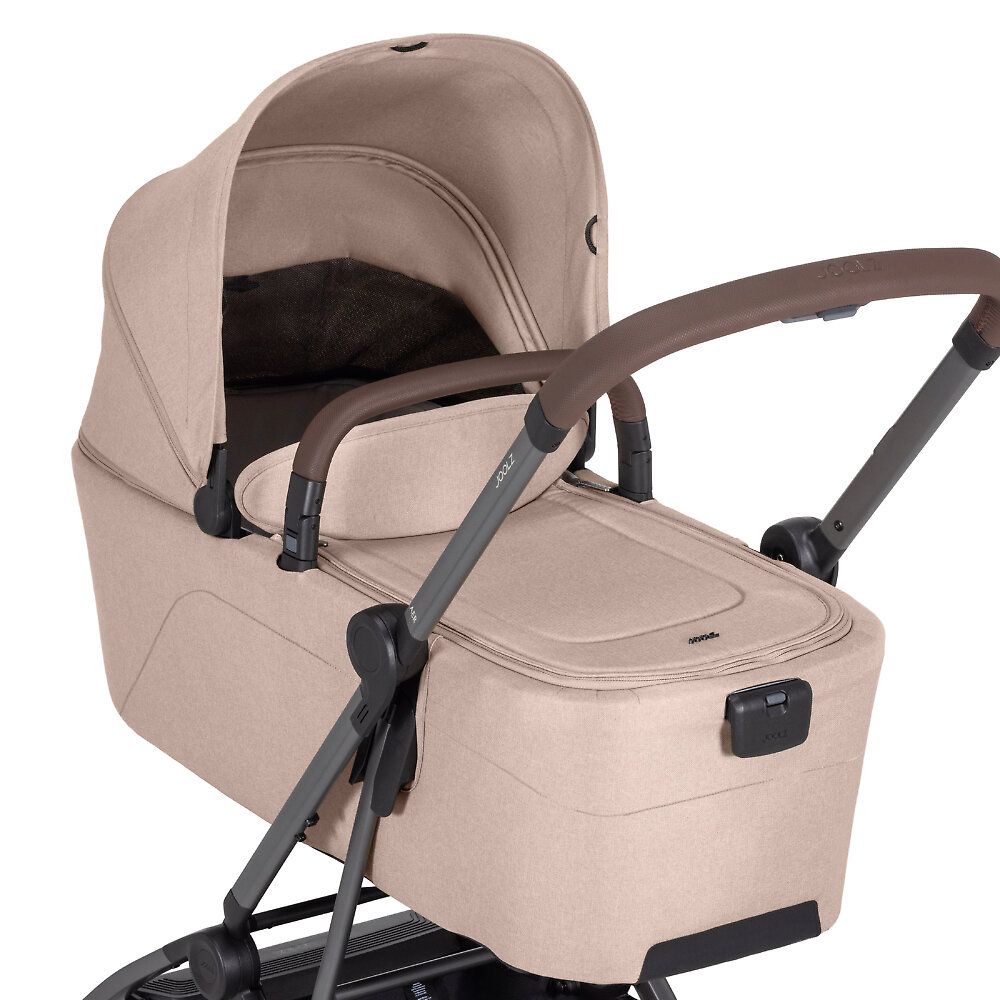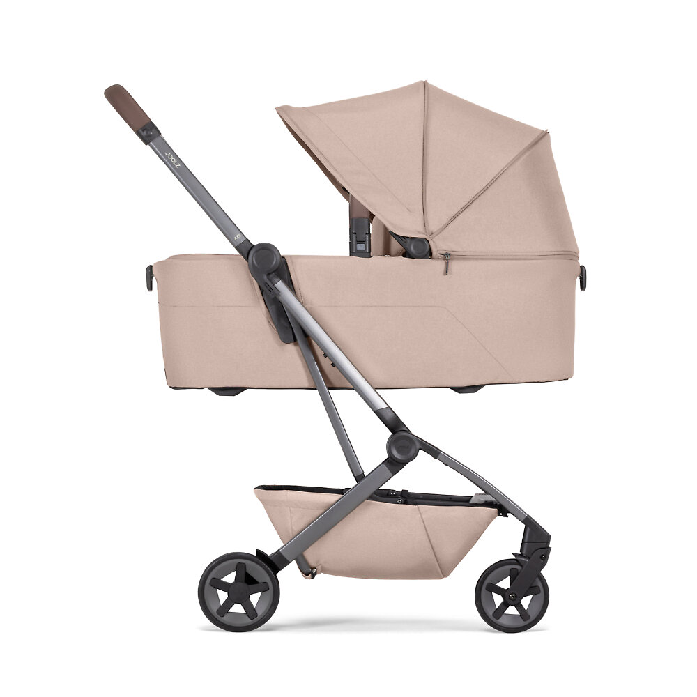 Люлька Joolz Aer2 CotВнутренняя отделка люльки Joolz Aer2 выполнена из премиальных материалов, они гипоаллергенные и очень приятны на ощупь. Люлька легко снимается с шасси с помощью клавиши в изножье. Переносить её можно за бампер. Колыбель можно поставить на пол, она уверенно стоит на ровной поверхности за счет пластиковых ножек, не пачкая текстиль. Люлька складывается вместе с шасси коляски, занимая совсем мало места. Она без труда поместится даже в небольшой багажник автомобиля. Поэтому с ней удобно передвигаться на личном транспорте или такси, а также брать с собой в путешествие.