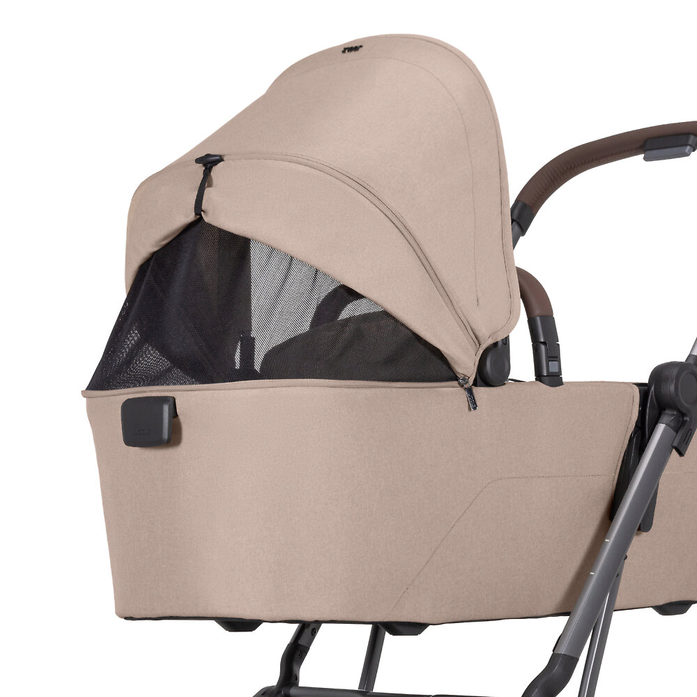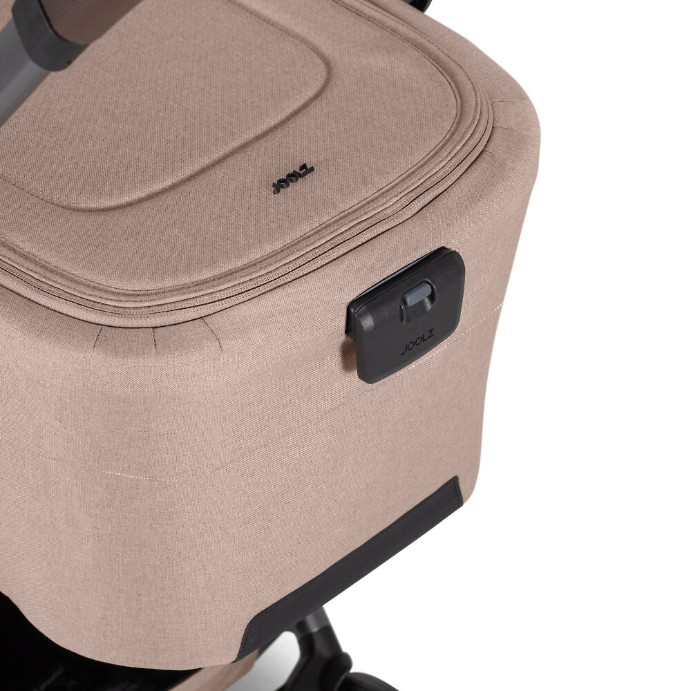 Люлька Joolz Aer2 CotСпальный блок отлично продуман для любого времени года. Большой капюшон с дополнительной секцией на молнии бесшумно регулируется и отлично закрывает новорожденного от ветра и непогоды. Тёплая накидка на ножки, которая крепится к люльке при помощи молнии, сохраняет тепло внутри. В жаркие дни удобно открыть большое окно для вентиляции. Так воздух будет циркулировать внутри люльки, создавая комфортный микроклимат вокруг малыша.