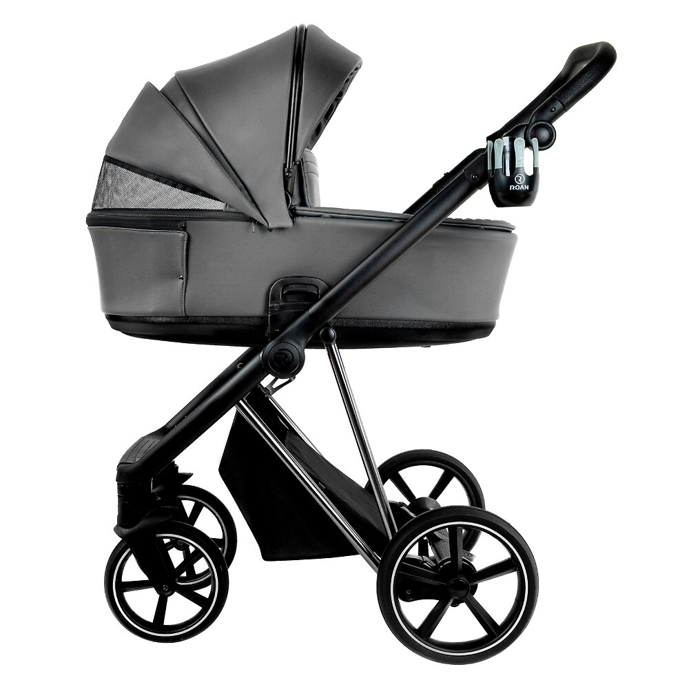 Детская коляска 2в1 Roan Sol Vintage EcoШасси Roan Sol Vintage Eco изготовлено из прочного, но легкого алюминия с качественным порошковым покрытием. Инженеры Roan оснастили раму особой пружинной подвеской на всех колесах, что обеспечивает мягкую амортизацию и плавный ход коляски даже по неровным дорогам. Такая мягкая амортизация поможет комфортно гулять по любым поверхностям – будь то городские тротуары, грунтовка или снежные заносы – без тряски и дискомфорта для маленького пассажира. Коляска очень маневренна: передние колеса меньшего диаметра поворачиваются на 360 градусов для лучшей управляемости. При необходимости их можно заблокировать в прямом положении для преодоления особенно сложных участках пути.