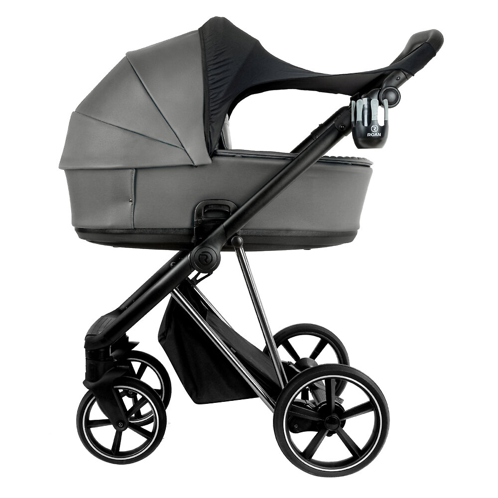 Детская коляска 2в1 Roan Sol Vintage EcoУ коляски регулируемая ручка для родителей с оплеткой из экокожи, которую можно настроить по высоте под рост родителей. Высота ручки регулируется нажатием боковых кнопок, фиксируясь в нескольких позициях. Просторная корзина для покупок находится в нижней части шасси: она выполнена из плотной ткани и вмещает все необходимые на прогулке вещи. Особенность корзины – откидной бортик сзади, благодаря которому легко класть и доставать даже крупные вещи. Система сложения шасси по типу «книжка» проста и интуитивна: коляска складывается компактно буквально одним движением. Можно сложить как раму как отдельно, так и вместе с установленным прогулочным блоком – это особенно ценят родители, которым важна мобильность. В сложенном виде Roan Sol Vintage Eco занимает минимум места, что удобно для хранения дома или перевозки в автомобиле.