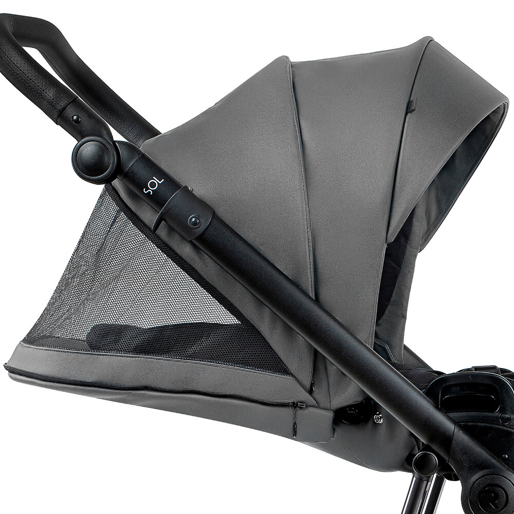 Детская коляска 2в1 Roan Sol Vintage EcoКапюшон прогулочного блока увеличенного размера и не уступает люльке по функциональности. Он состоит из трех секций с выдвижным козырьком и опускается до бампера, надежно защищая ребенка от яркого солнца, ветра и дождя. Одна из секций имеет сетчатую вставку – что обеспечивает вентиляцию в жаркое время и служит окошком для наблюдения. Капюшон регулируется бесшумно, не тревожа спящего малыша, а в сочетании с накидкой на ножки превращает сиденье в закрытый уютный кокон для прохладной погоды.