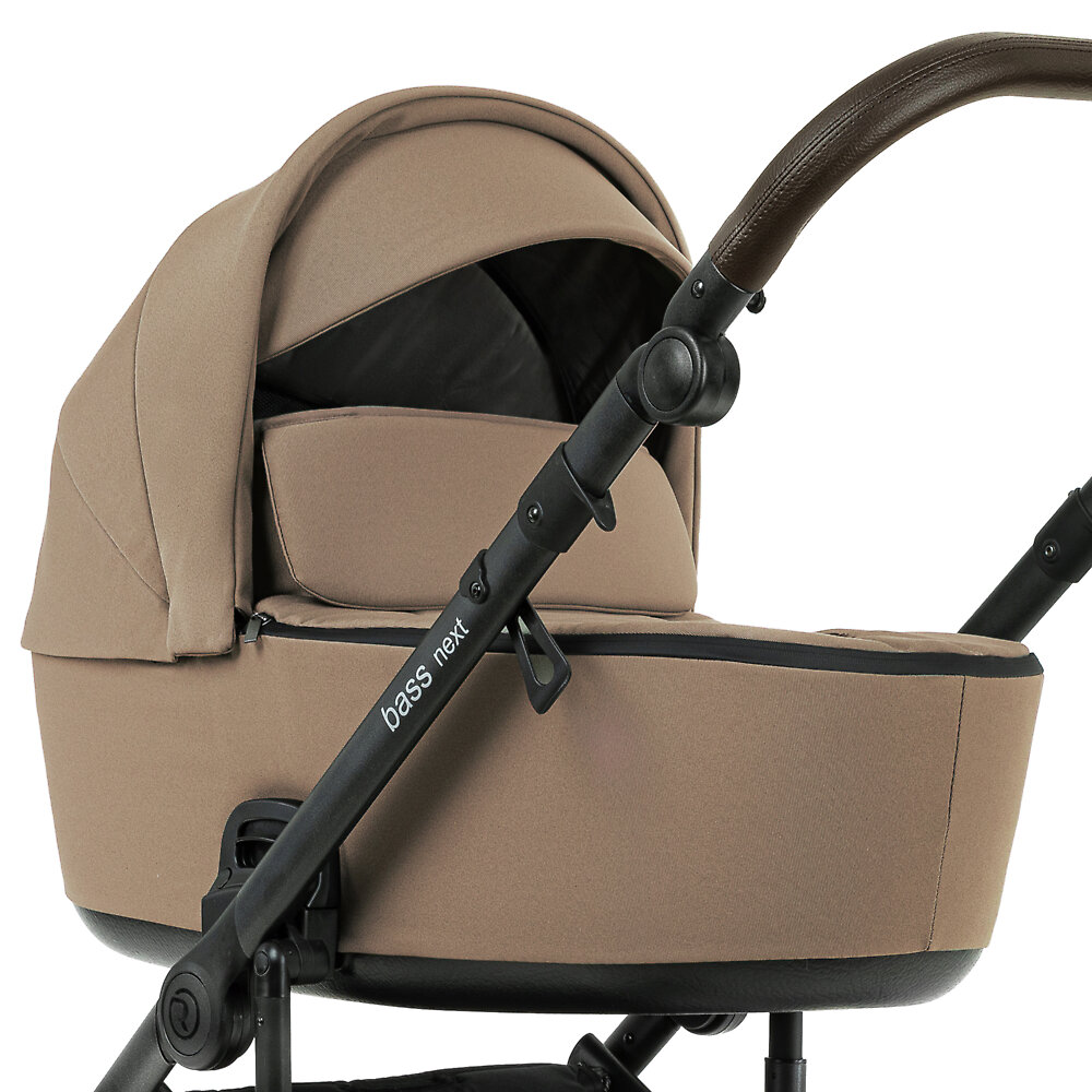 Внутренняя часть люльки Bass Next выполнена из гипоаллергенных качественных тканей. Упругий матрасик в хлопковом чехле поддерживает шею, голову и спинку младенца в правильном положении. Внутренняя обивка крепится к люльке с помощью молнии. В случае необходимости её можно легко снять для стирки в деликатном режиме.