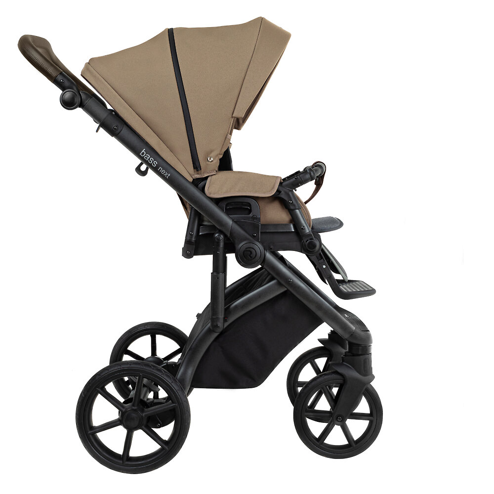 Стальная рама, окрашенная в элегантные оттенки черного или серого, придаёт Roan Bass Next изящный облик. Компактно сложив раму, вы сможете легко и быстро убрать её после использования. Но главное – это великолепная система SAS-4 амортизаторов, расположенных на задних колёсах и на стойках шасси. Их «умная» конструкция позволяет настраивать плавность движения, а благодаря возможности отключения амортизации на стойках, вы можете легко приспособить коляску к любым дорожным условиям.