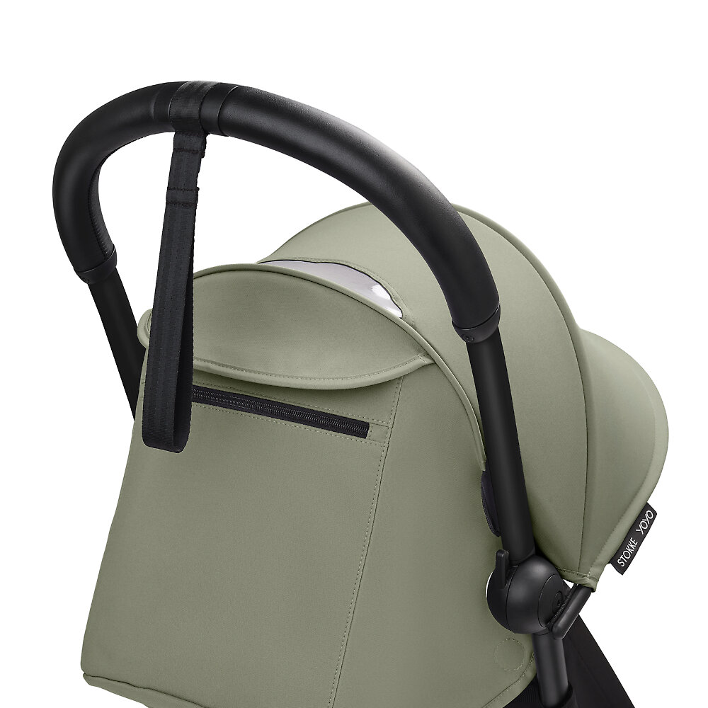 Ручка сплошная, поэтому коляска легко управляется одной рукой. Не регулируется по высоте, покрыта эко-кожей премиум класса, с ремешком на запястье для большей безопасности. Имеется жёсткая нерегулируемая подставка для ног. Корзина для покупок у БебиЗен ЙоЙо 2 хорошая, вместительная. Доступ к корзине не затрудняется при опущенной спинке. Коляска оснащена плечевым ремнем с мягкой накладкой для переноски, при раскладывании он автоматически «ныряет» в корзинку и не пачкается.