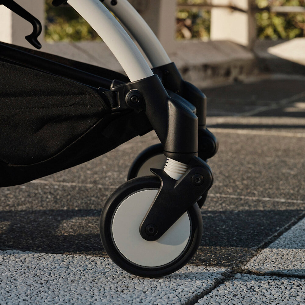 Каркас выполнен из ударопрочного, армированного стекловолокном материала DuPont Zytel. В сложенном виде коляска BabyZen YoYo 2 занимает в два раза меньше места, чем классическая коляска-трость. Вращающиеся на 360° передние колеса с амортизаторами автоматически фиксируются при езде по неровной дороге, обеспечивая лёгкий плавный ход. Эта уникальная система блокировки Soft-Drive запатентована компанией BabyZen. Также имеется небольшая педаль тормоза, которая не портит обувь, так как нет необходимости поддевать её снизу.