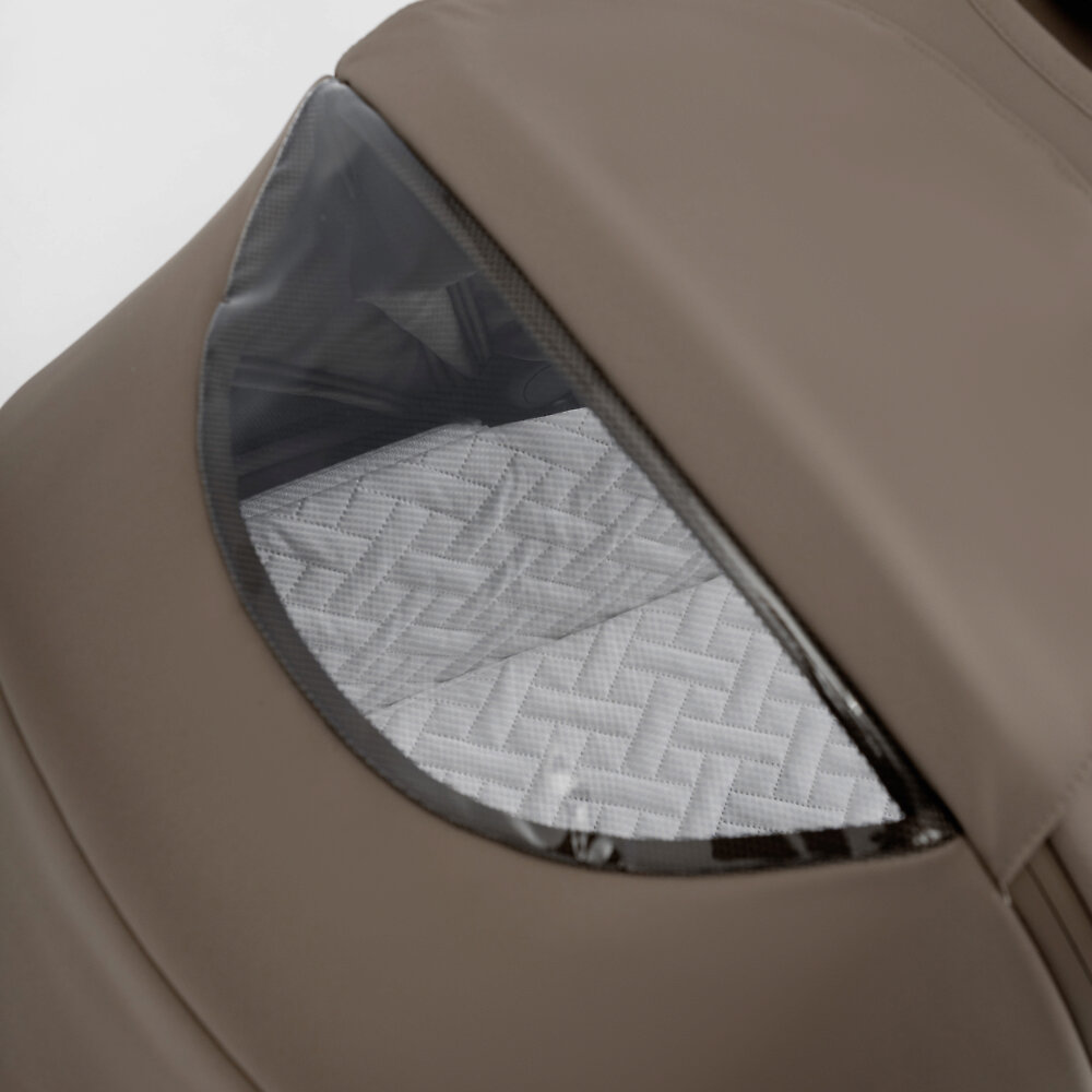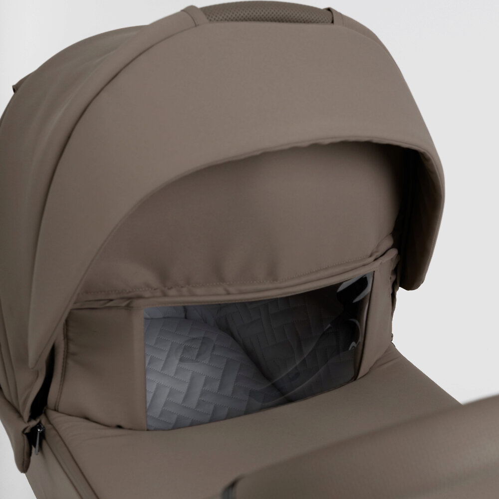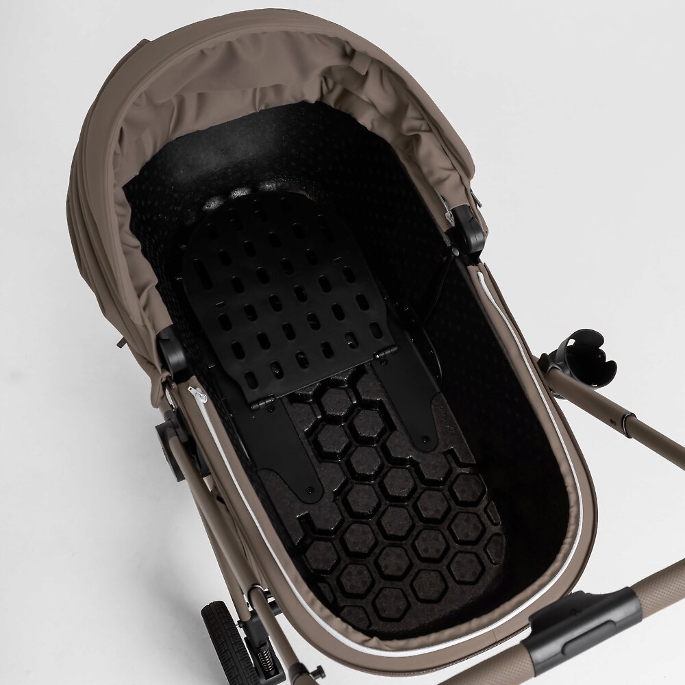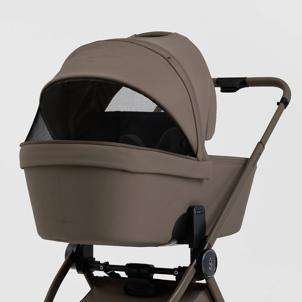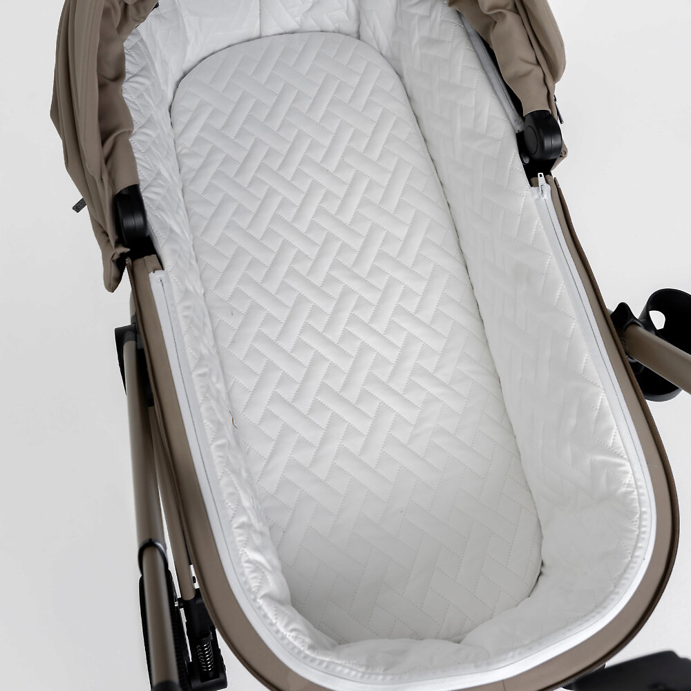Люлька коляски Sweet Baby Elegante Pro легко подстраивается под разный рост родителей. Её высоту можно регулировать с помощью двух кнопок по бокам. Просто зажмите их и выберите удобное для вас положение колыбели. Обивка люльки выполнена из гипоаллергенных материалов с водоотталкивающим эффектом. Большой капюшон бесшумно регулируется с помощью кнопки – вы легко сможете опустить его одной рукой. Для жаркого времени года в капоре предусмотрена большая вентиляционная секция.