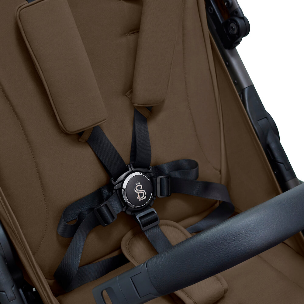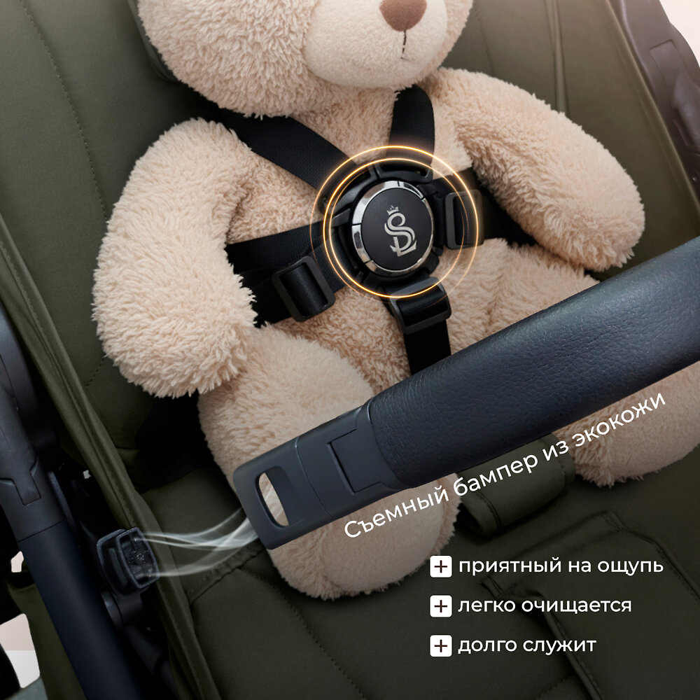 Прогулочная коляска Sweet Baby UnicaШирокое и просторное спальное место позволяет даже крупному ребёнку спокойно спать в коляске. Спинка опускается при помощи рычажка в полностью горизонтальное положение, превращая сиденье в уютную кроватку на колесах. Для максимального комфорта – поднимите подножку. Её нижняя часть покрыта прочной экокожей и легко чистится от грязи, что будет полезно в межсезонье и зимой, когда ребёнок начнет самостоятельно ходить. В коляске Sweet Baby Unica предусмотрены пятиточечные ремни безопасности с мягкими накладками, которые обеспечат комфортное прилегание лямок к плечам ребёнка. В колясках 2025 года используется магнитный замок. Поворотно-откидной бампер легко открывается с каждой стороны, межпаховая накладка крепится к нему с помощью кнопки.