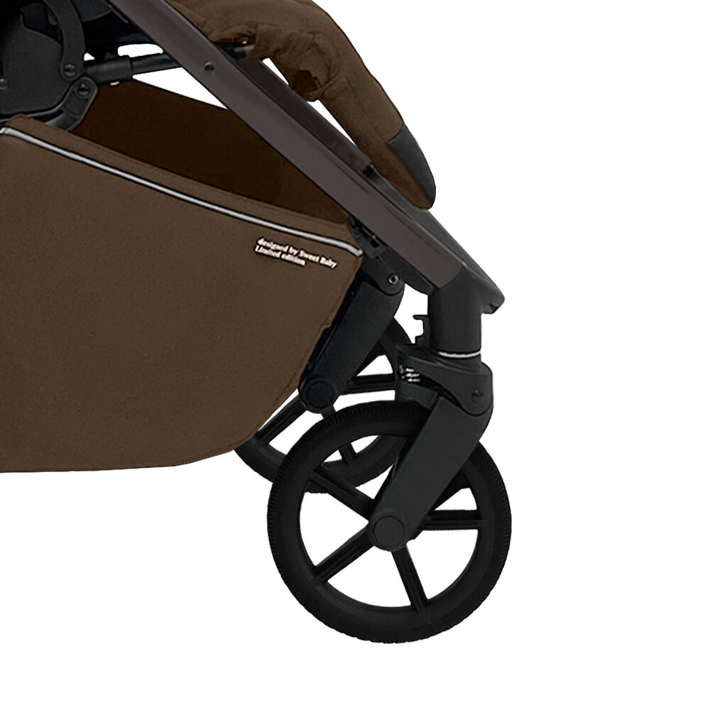 Прогулочная коляска Sweet Baby UnicaМощные пружины, расположенные на всех колёсах, обеспечивают коляске очень мягкий и плавный ход. Жесткость амортизации можно регулировать при помощи специальных рычажков сзади. При движении по ровному асфальту установите режим «Hard», так коляска станет более послушной и маневренной. Если вы едете по лесу или бездорожью, передние поворотные колеса можно зафиксировать. Теперь Unica готова смело ехать даже там, где дороги нет! Тормоз расположен на задней перекладине и не пачкает обувь. В большой корзине удобно перевозить всё необходимое. Она глубокая и очень вместительная, при этом расположена довольно высоко от земли и не трется о бордюры.