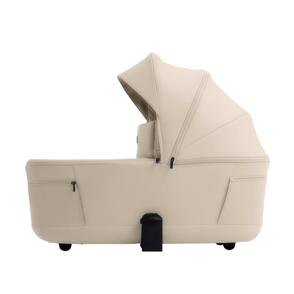 Две кнопки с эффектом памяти позволяют легко снимать люльку с шасси. Её можно переносить за ручку на капюшоне, чтобы подарить крохе дополнительные моменты сна после прогулки. Адаптеры высоты позволяют устанавливать спальный блок выше для высоких мам и пап. На дне предусмотрены пластиковые ножки, а значит вы сможете поставить люльку на пол. Для хранения и перевозки колыбель компактно складывается в тонкий «блинчик».
