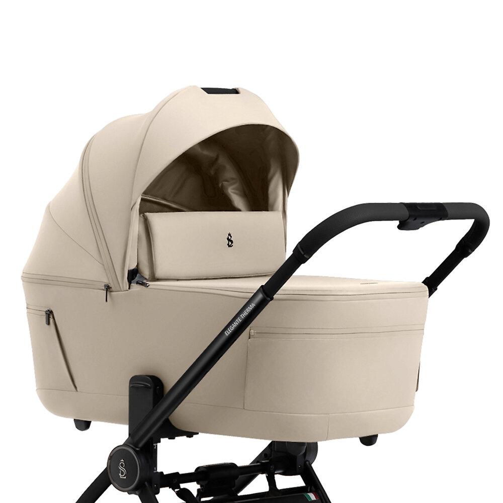 Внутри люлька Sweet Baby Elegante Therma Colore отделана натуральными материалами премиум класса, которые можно снять для стирки. Анатомический матрасик гарантирует равномерную поддержку головы, шеи и спины новорожденного младенца в первые полгода жизни. Чехол матрасика можно снять для стирки в случае загрязнения. В серии Therma есть регулируемый подголовник, а дно люльки выполнено из термоактивного материала, поддерживающего оптимальную температуру летом и зимой.