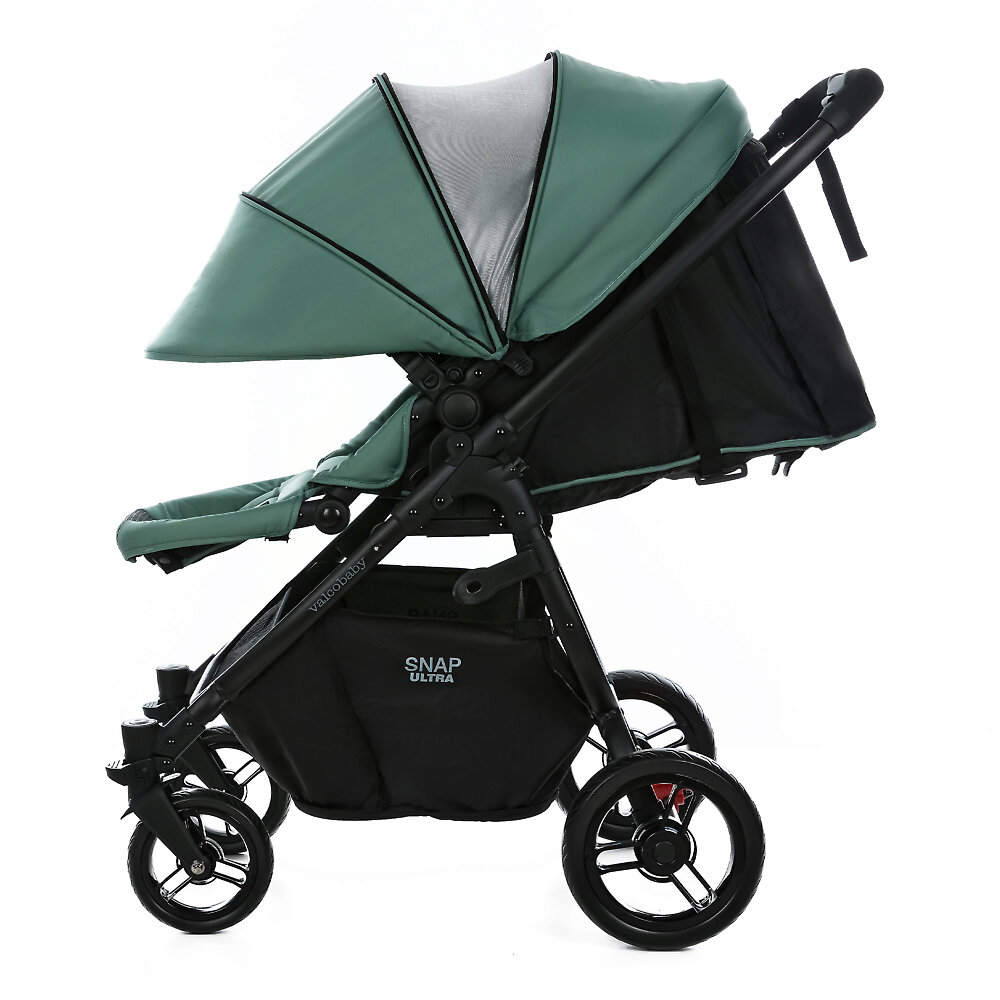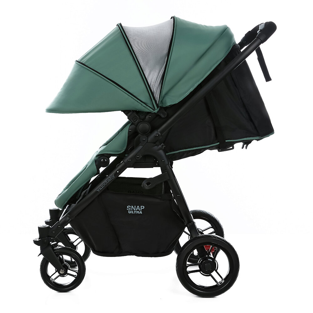 Особая гордость Valco Baby Snap Ultra – огромный регулируемый капюшон. Два из четырёх его сегментов застёгиваются на молнию, в этом случае капюшон имеет средний размер. Но расстегнув молнии, мы получаем тент, закрывающий малыша от солнца до самых ножек. Одна из секций выполнена из сетчатой ткани и позволяет наблюдать за ребёнком во время прогулки, а также служит для проветривания внутреннего пространства коляски.