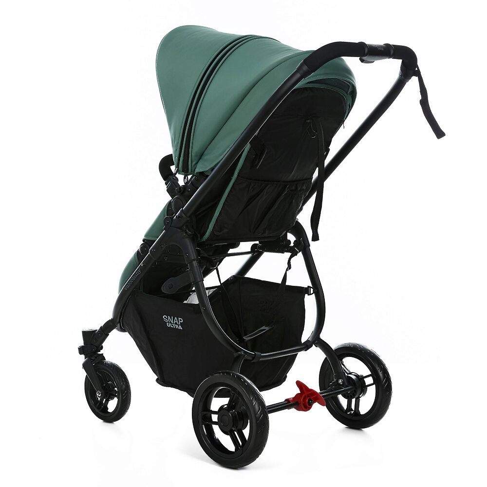В нижнем отделе коляски находится глубокая, вместительная корзина для покупок. Доступ в неё всегда открыт. Четыре больших полиуретановых колеса обеспечивают коляске относительно хорошую проходимость. Все они съёмные, поэтому их легко помыть, и они не мешают при хранении и транспортировке изделия. Ножной тормоз сделан в соответствии с австралийским стандартом, для управления им задействуется только подошвенная часть обуви. Детская коляска 2 в 1 Valco Baby Snap Ultra – достойный выбор для современной семьи!